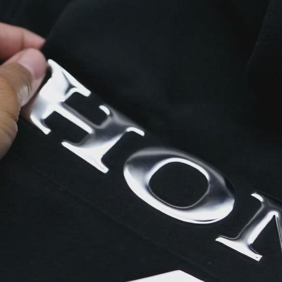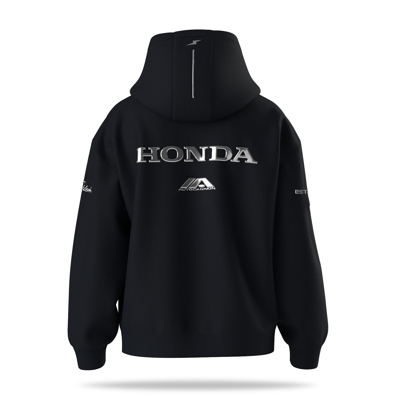 The Autocannon x Honda Emblem Hoodie in Black is a standout piece in the collection, blending passion for the brand with premium craftsmanship. Featuring the iconic Honda “H” logo reproduced for the first time ever as a flexible, washable 3D chrome metallic applique—mirroring the emblem found on Honda vehicles—this pullover hoodie delivers a sharp, clean, and elevated look.