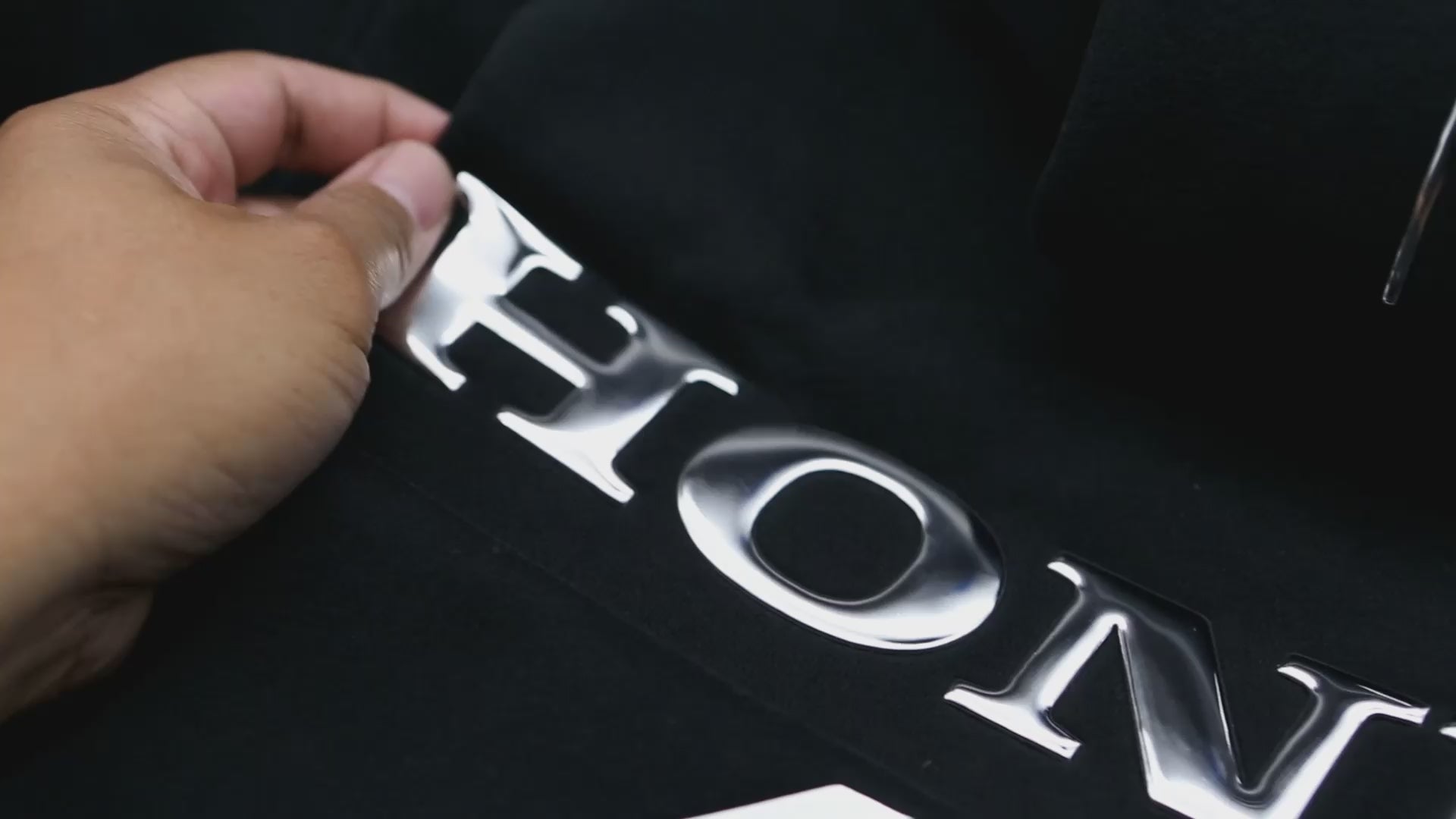 - Oversized chrome-finish 3D “Honda” graphic on the back
