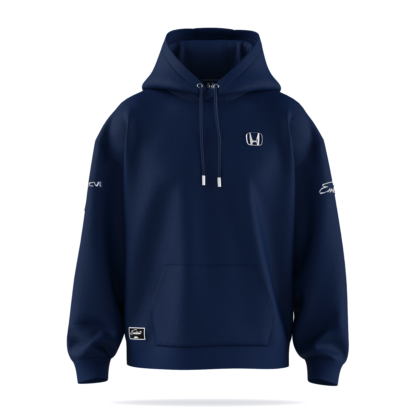 The Autocannon x Honda Emblem Hoodie in Navy is a standout piece in the collection, blending passion for the brand with premium craftsmanship. Featuring the iconic Honda “H” logo reproduced for the first time ever as a flexible, washable 3D chrome metallic applique—mirroring the emblem found on Honda vehicles—this pullover hoodie delivers a sharp, clean, and elevated look.
